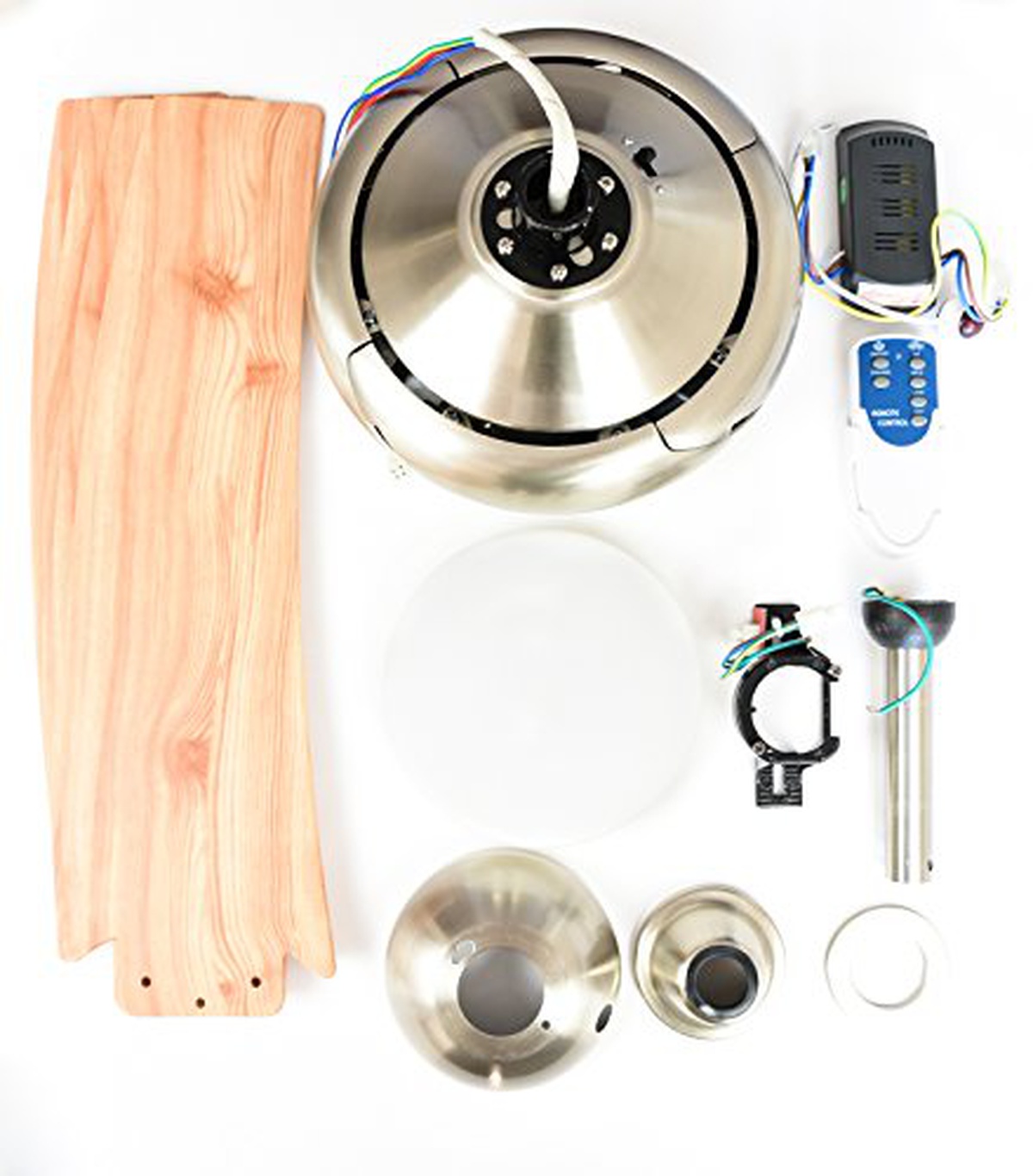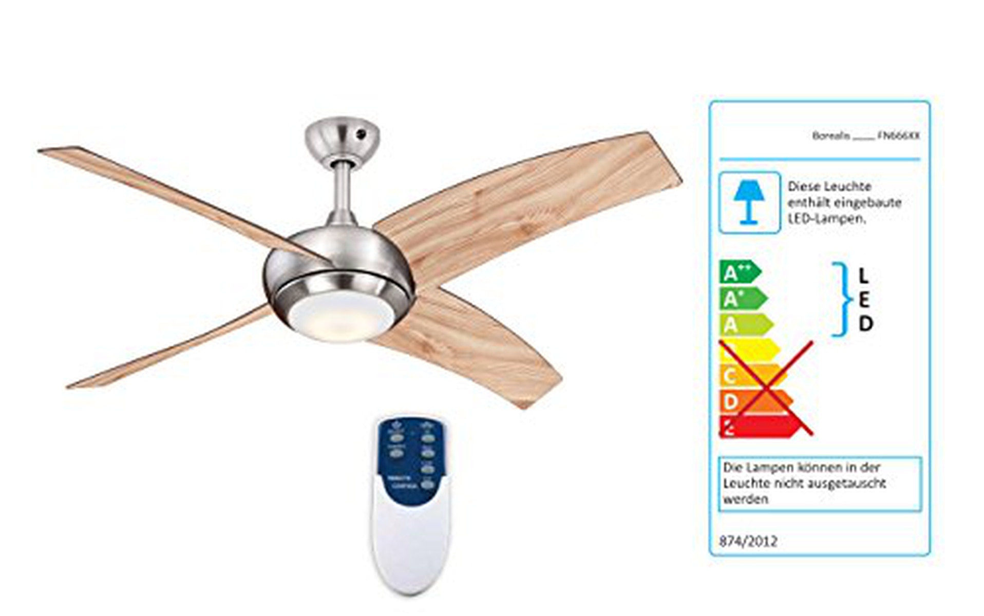 AireRyder FN66635 - Ventilatore da soffitto Borealis con illuminazione e telecomando, rivestimento nichel satinato, colore pallido pino, 122 cm