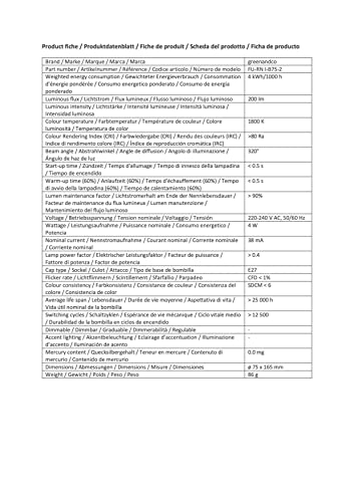 greenandco FU-RN I-B75-2 W lm