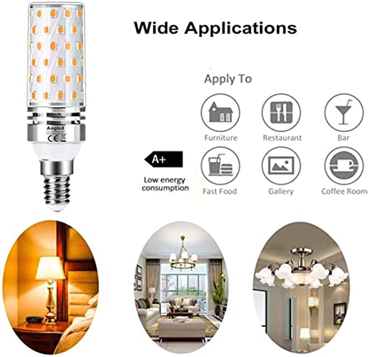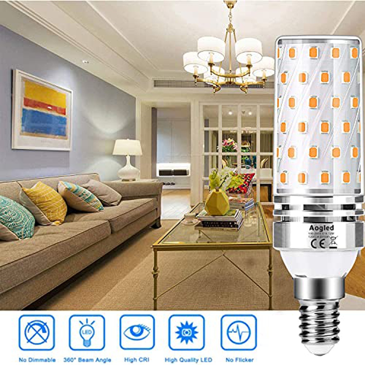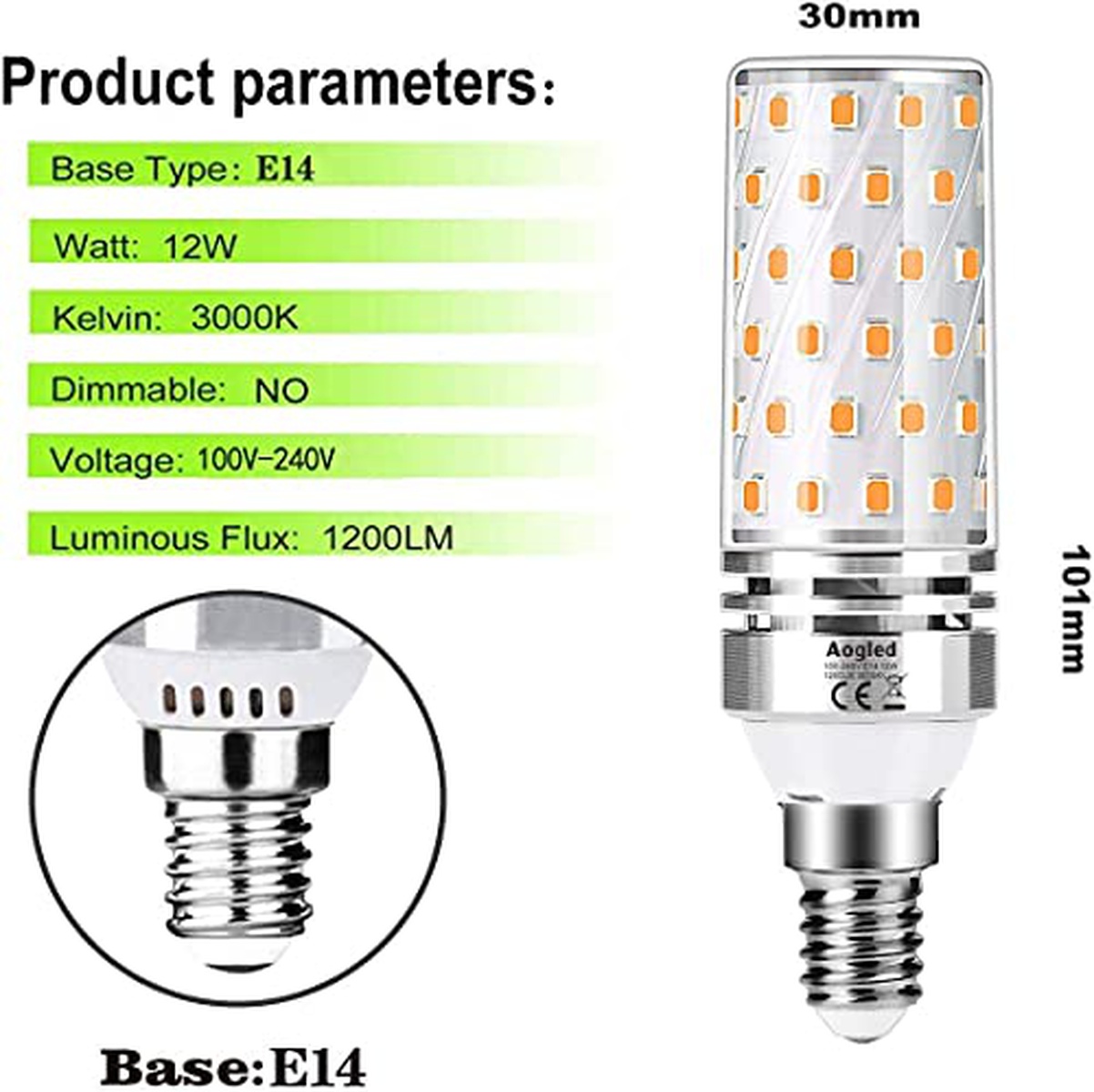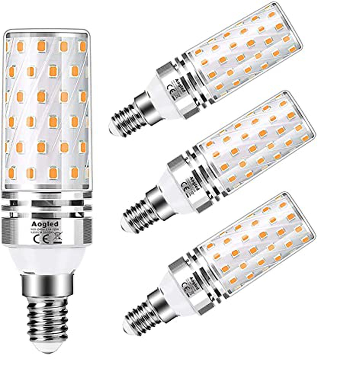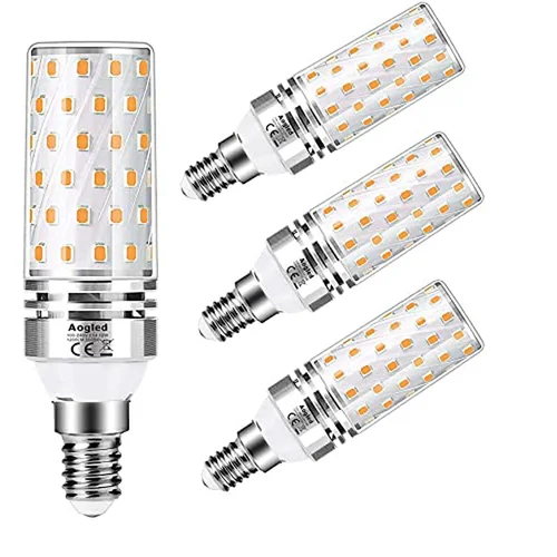Aogled Lampadine LED E14 12W 3000K,Equivalente 100W Lampada Alogena,Bianco Caldo,1200LM,Angolo 360,Lampadina Edison,Non Dimmerabile,Nessun Sfarfallio,AC100-240V,E14 LED Calda,4 Pezzi
