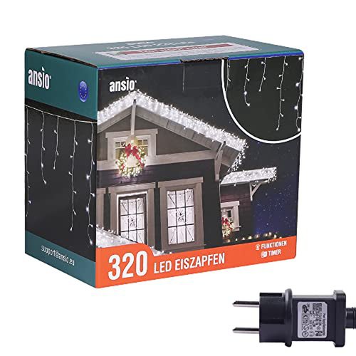 ANSIO® Luci Natale Esterno Cascata 11m 320 LED Luci di Natale Luminose Bianco Fredda Luci Natalizie da Esterno/Interno Ideale per Mantello, Balcone Lucine Luminoso | Cavo Bianco