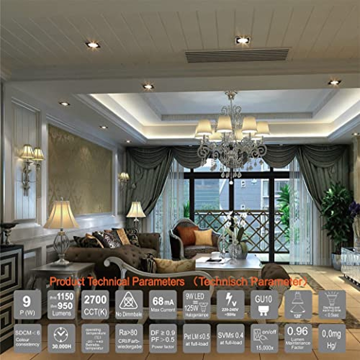 AC 230V, 50Hz; GU10; Фtotal 1150lm