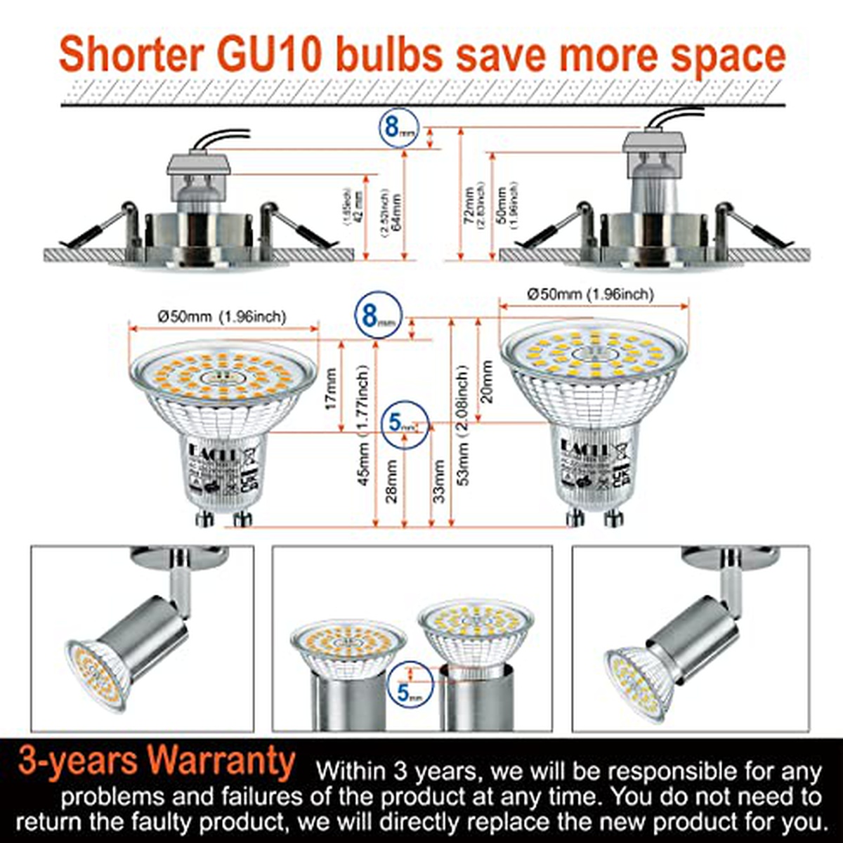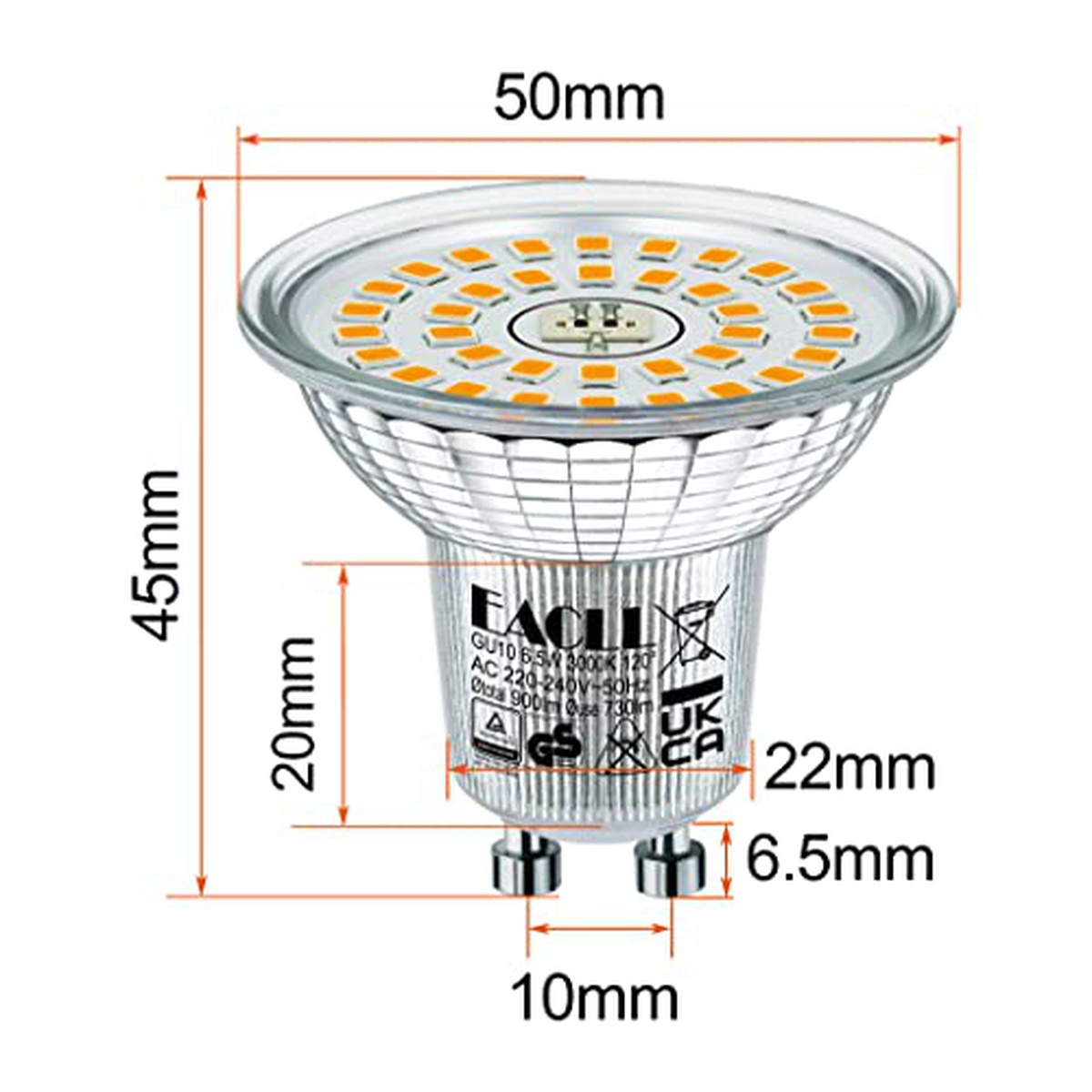 AC 230V, 50Hz; GU10; Фtotal 900lm